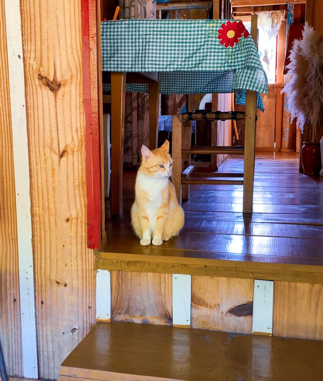 Durante o café, é bom ficar atento, pois os bichanos (mansos e carinhosos) não perdem tempo em “conseguir” uma comidinha (risos).