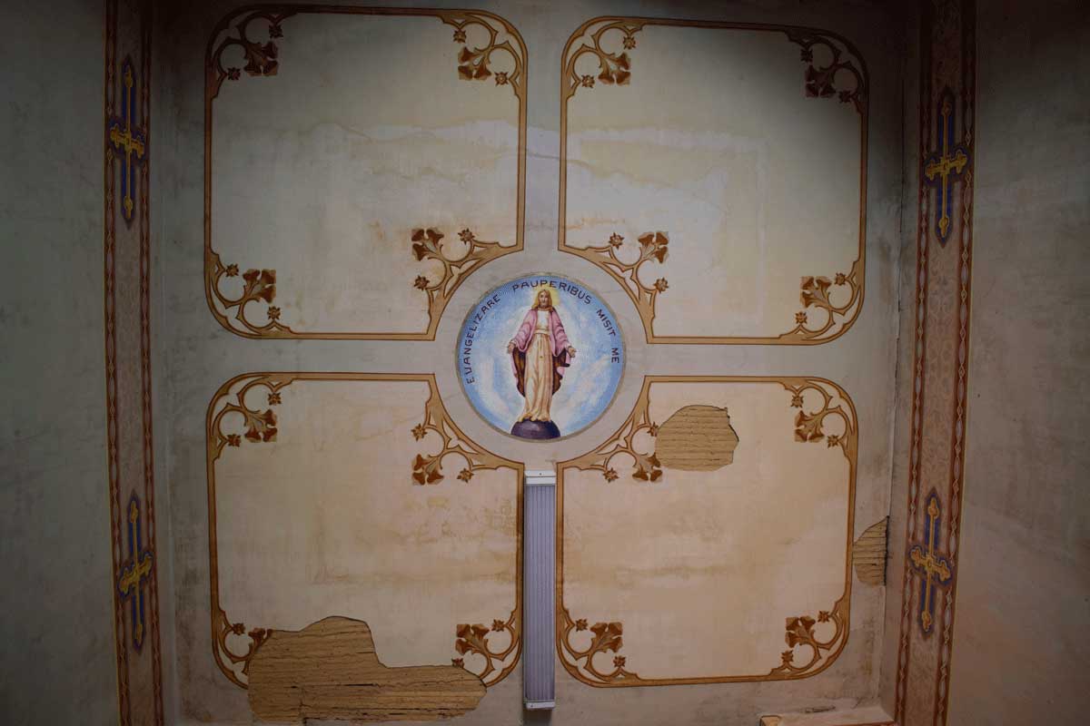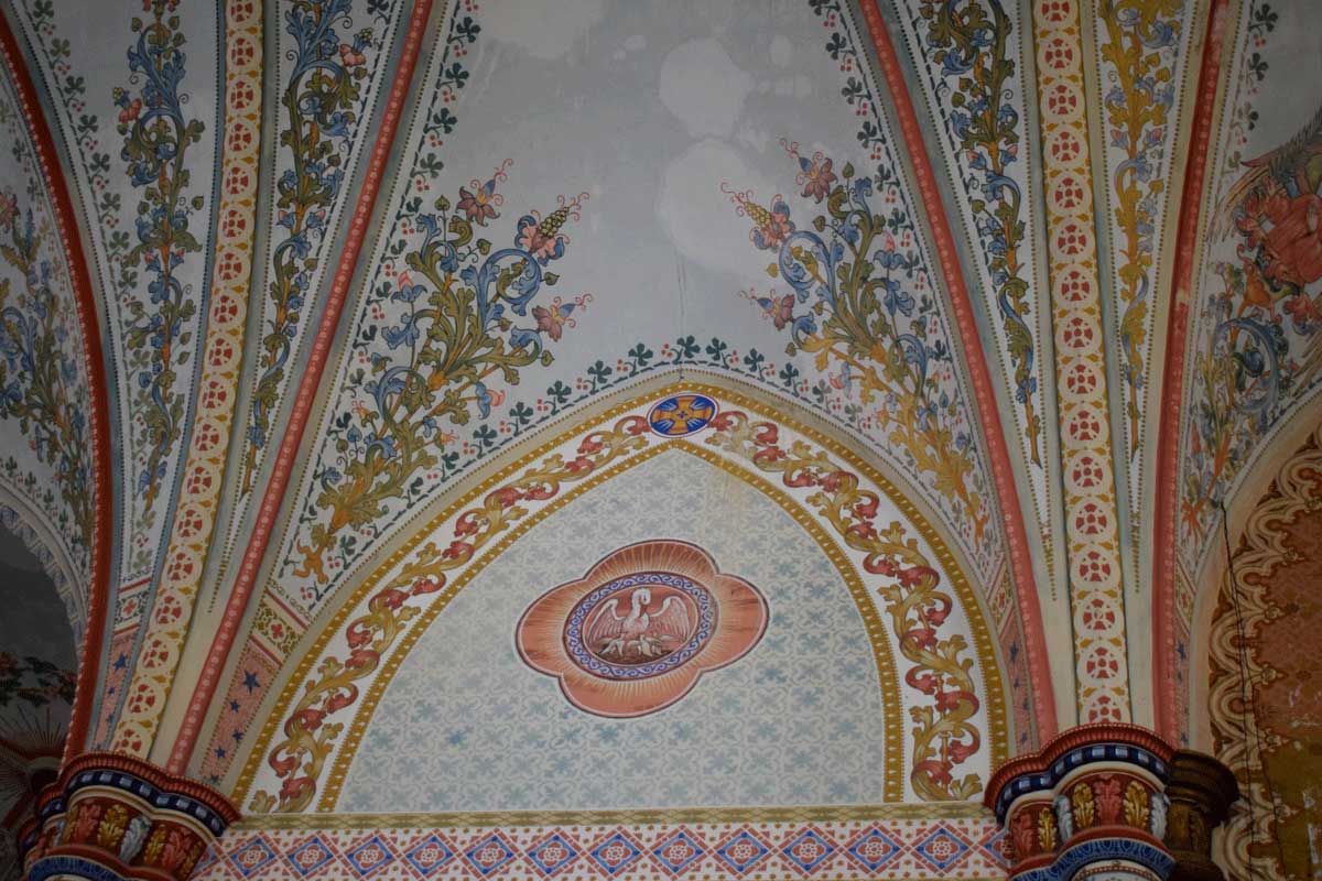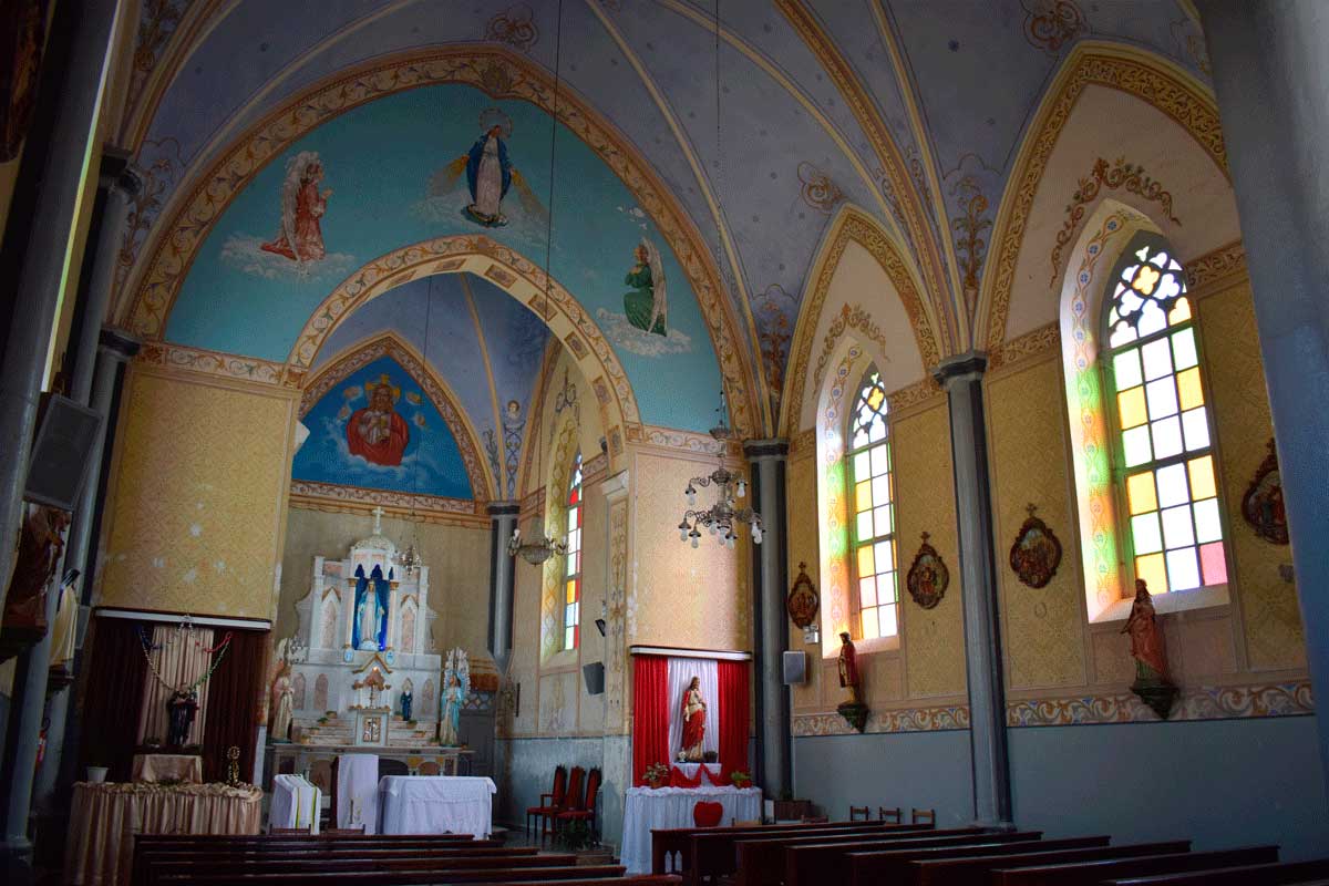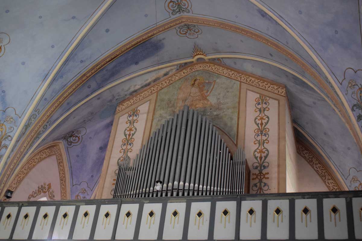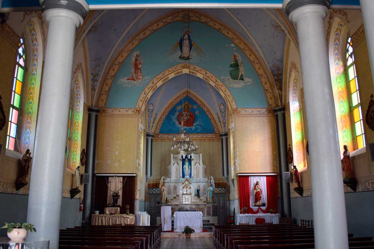 O local religioso possui pinturas internas e um órgão de tubos, item, que de acordo com o nosso ‘amigo’ Google “é um instrumento musical da família dos aerofones de teclas, tocado por meio de um ou mais manuais e uma pedaleira. O som é produzido pela passagem de ar comprimido através de tubos sonoros de diversos formatos, materiais e comprimentos”.