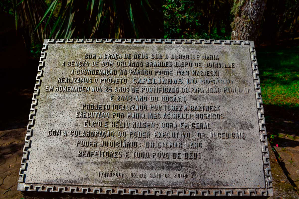 A primeira parada no bairro mais antigo de Itaiópolis foram as “Capelinhas do Rosário”, um local em meio a um bosque, para aqueles que têm fé e querem um local de paz e silêncio para praticar suas orações. O espaço está localizado próximo a Igreja Santo Estanislau, as capelinhas possuem mosaicos onde são mostradas passagens importantes da vida de Jesus Cristo e Maria, lembradas na oração do rosário.