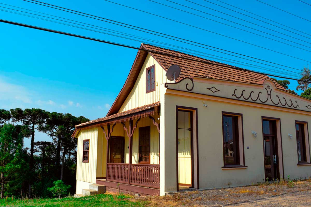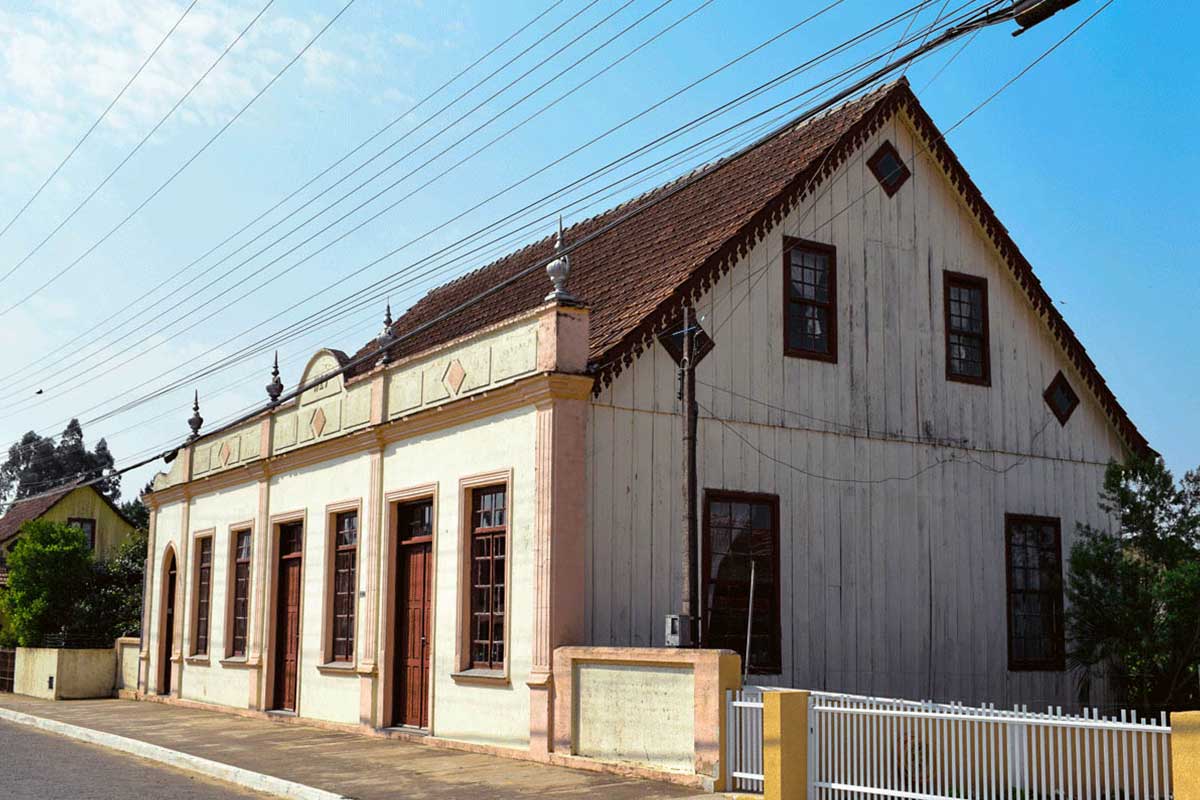 A edificação construída em 1928, abrigava um banco e armazém e foi comprada pelo IPHAN em 2008 possui como característica principal uma fachada frontal em alvenaria apresentando arranjos e proporções que tendem ao neoclássico, varandas laterais, telhado de telha cerâmica francesa e seu corpo é totalmente de madeira, inclusive suas paredes internas, preservando assim a arquitetura eslava no município.