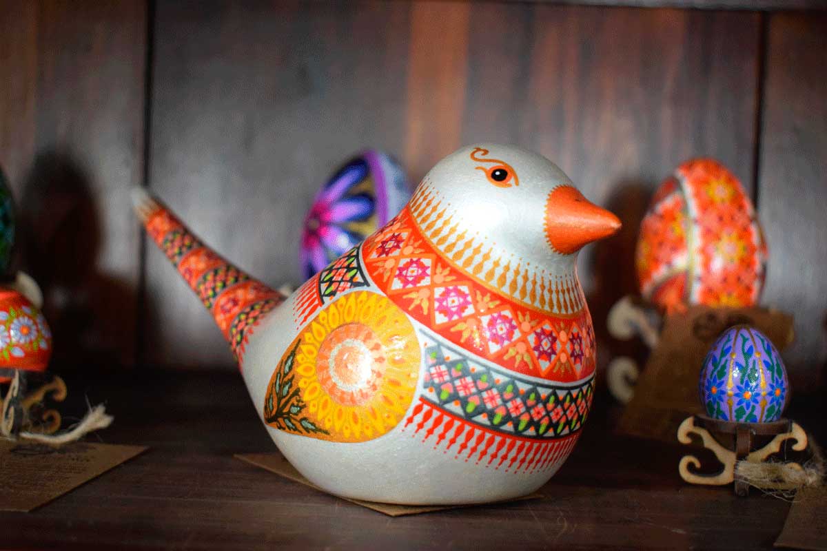 O monumento é composto pela Pêssanka, ladeado por painéis onde estão representados: Nossa Senhora de Czestochowa ou Nossa Senhora do Monte Claro, na parte da frente, e flores estilizadas na parte de trás. – A águia branca, símbolo da Polônia, na parte da frente, e o brasão de Itaiópolis na parte de trás.