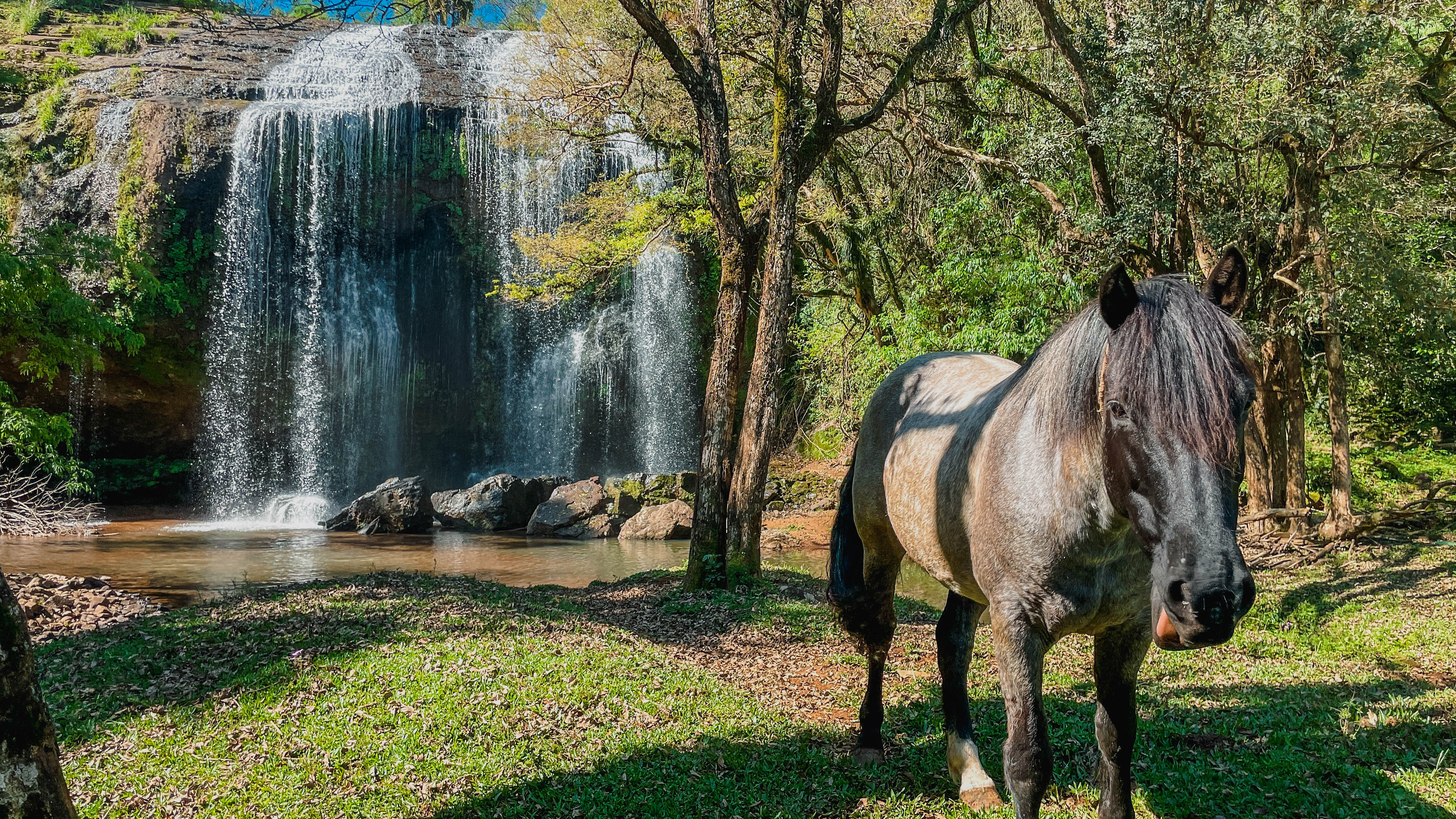 Fui até Vargeão, no Oeste de Santa Catarina, conhecer a Cachoeira Urumbeva. O atrativo natural está localizado em uma propriedade particular, na Linha Urumbeva.