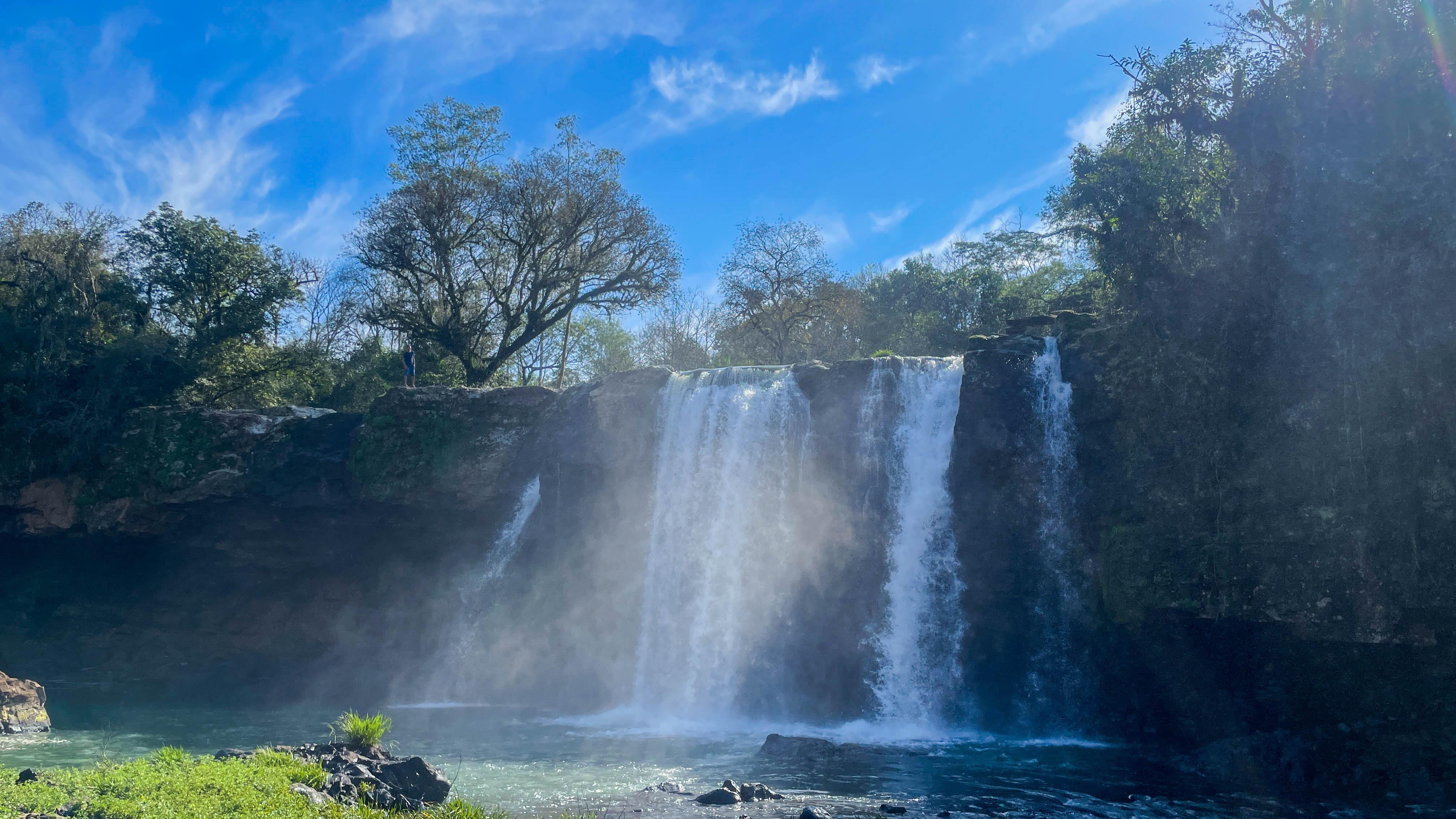 Em pleno inverno, em um final de semana com muito sol e calor, decidi viajar até o Extremo Oeste de Santa Catarina para conhecer uma cachoeira linda, localizada em Descanso (SC). Não encontrei muitas informações sobre o local, o máximo, foram comentários de usuários no Google informando que se trata de uma propriedade privada, porém, que a passagem é permitida, sem custo.