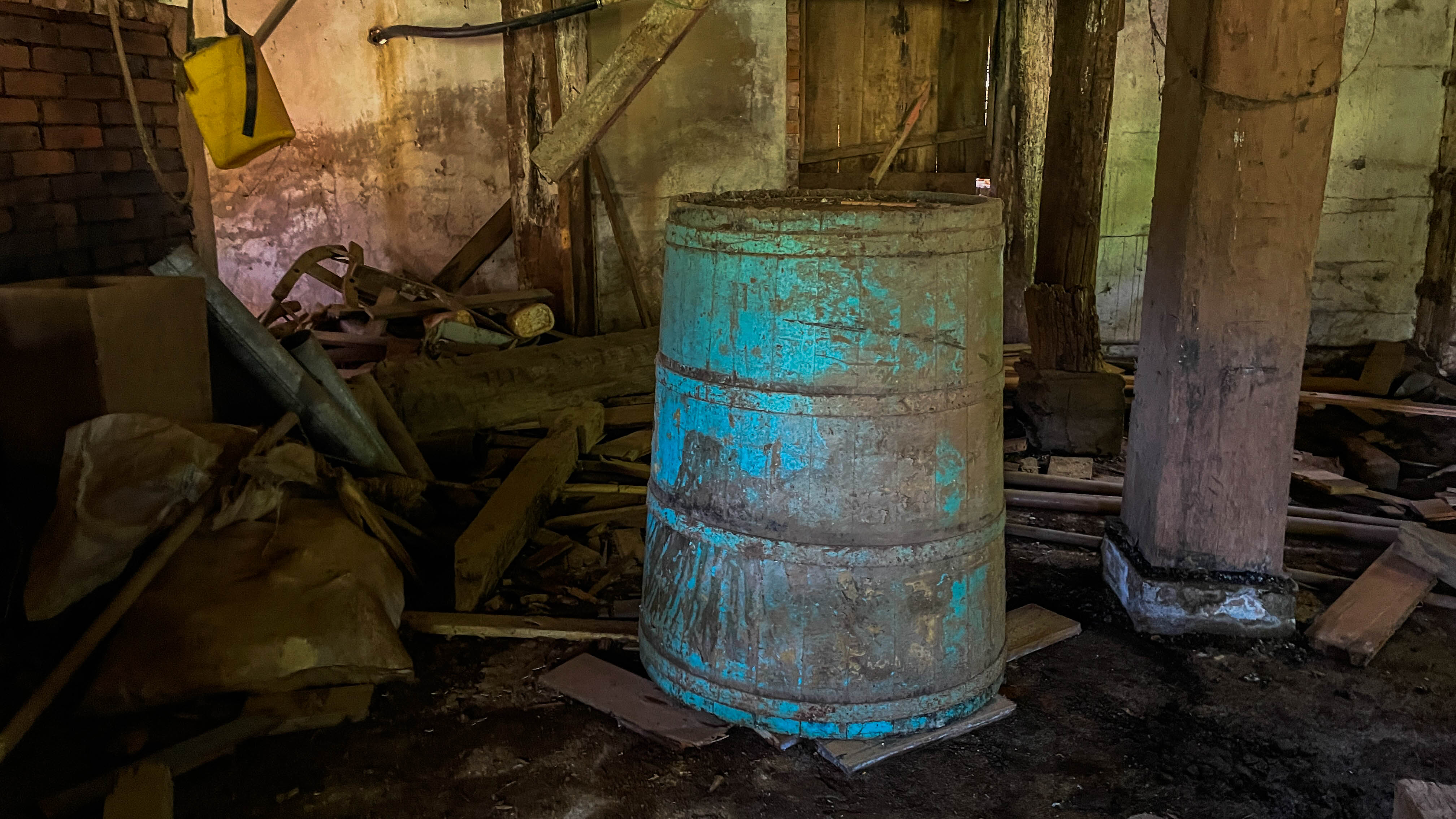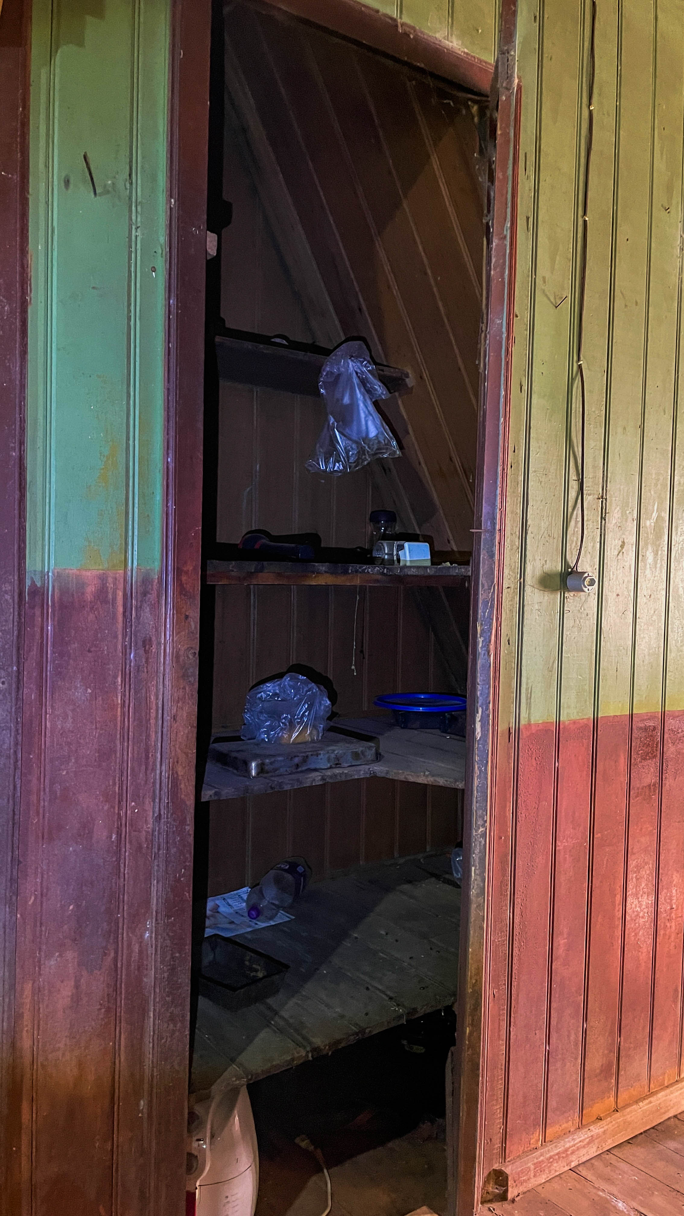 Ao visitar a residência, o primeiro cômodo que conheci foi o porão. Não pude deixar de perceber que ali há um tipo de quarto, um espaço feito de alvenaria no centro do porão. Nadir me contou que o espaço foi pensado para o armazenamento de alimentos da família.