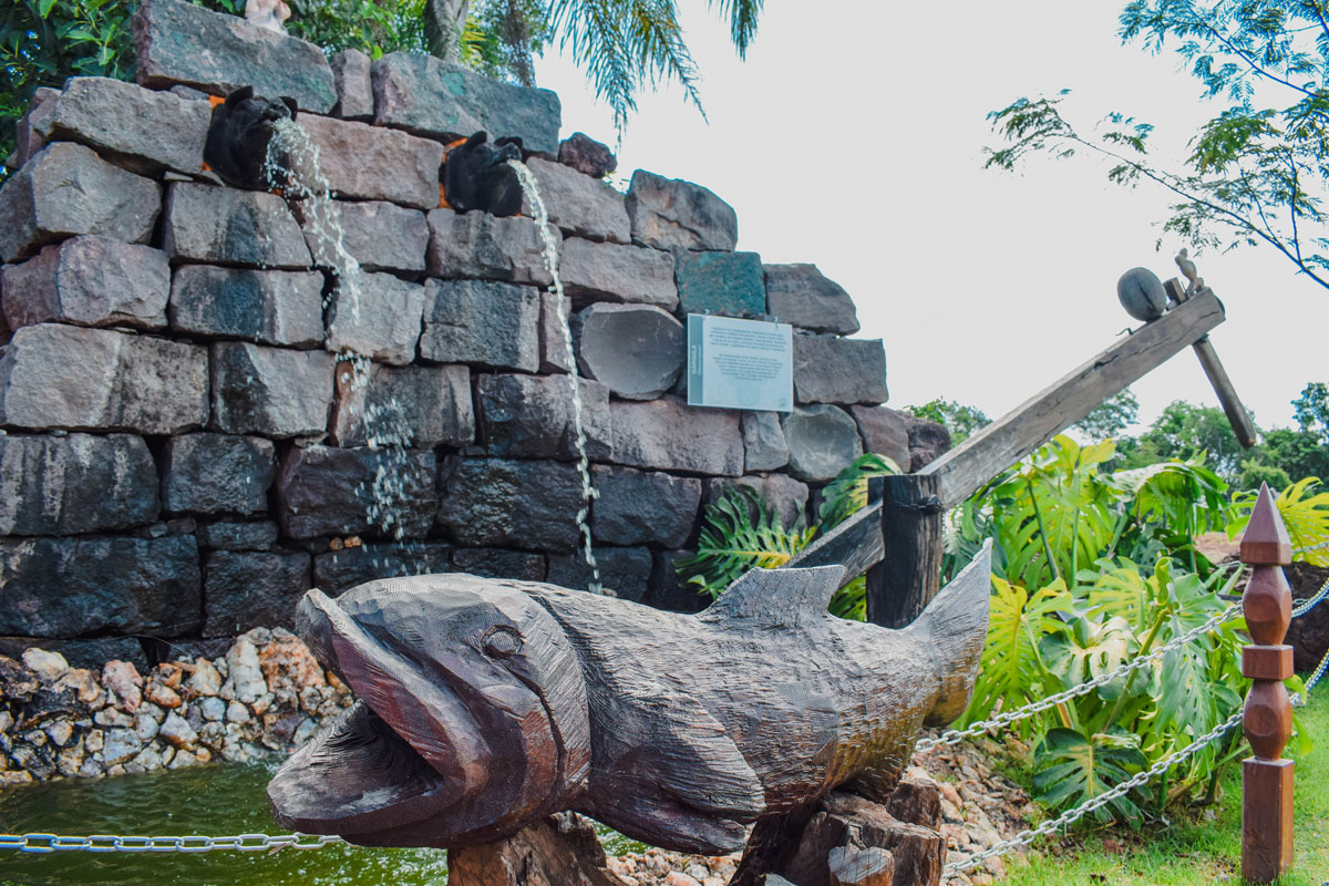 Ao chegar na região dos galpões, é possível observar na parede (do Galpão 1), diversas ferramentas agrícolas, além de esculturas de alguns animais, como os bois e cavalo, animais de extrema importância para a realização de atividades diários no campo, como; transporte de madeira, preparar o solo para a plantação de produtos agrícolas e o funcionamento da Moenda, instrumento utilizado para moer a cana-de-açúcar.
