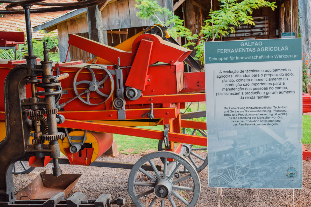 No segundo galpão, é possível observar equipamentos mais modernos, em comparação com as diversas ferramentas expostas no primeiro galpão. Ali é possível observar a evolução de equipamentos agrícolas, que não necessitam da utilização de bois ou trabalho manual para o seu funcionamento.