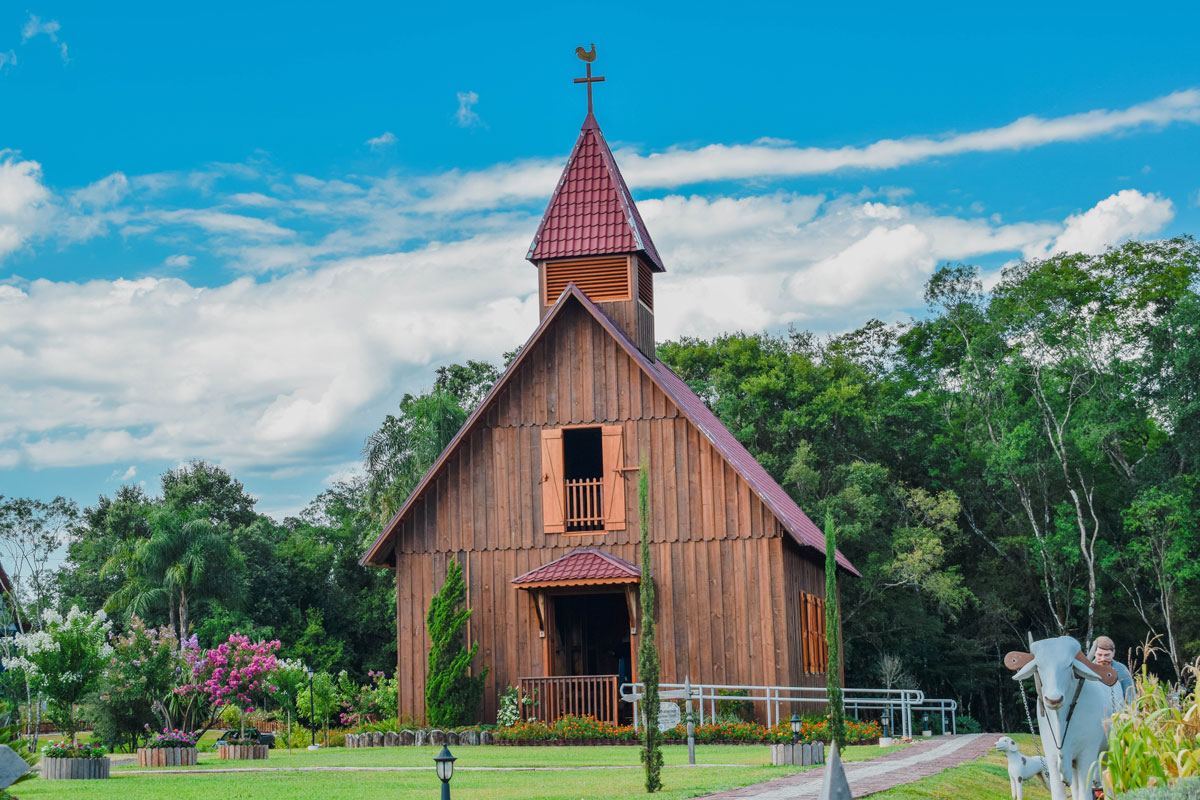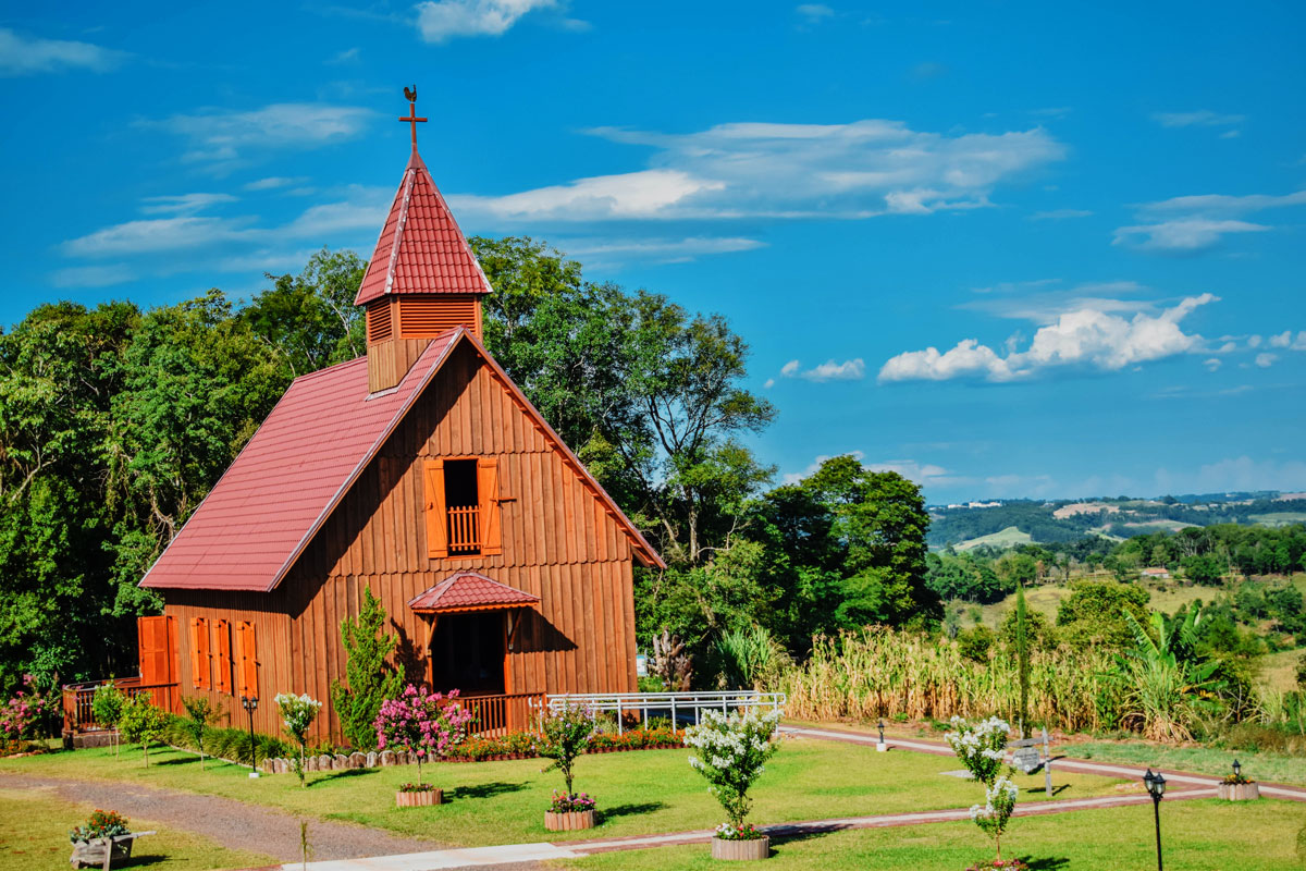 Uma construção singela em madeira, mas que chama a atenção de longe pela sua beleza, a igreja construída no Centro Histórico Germânico tem por objetivo a preservação de características da primeira igreja, construída em 1935 na Linha Presidente Becker.