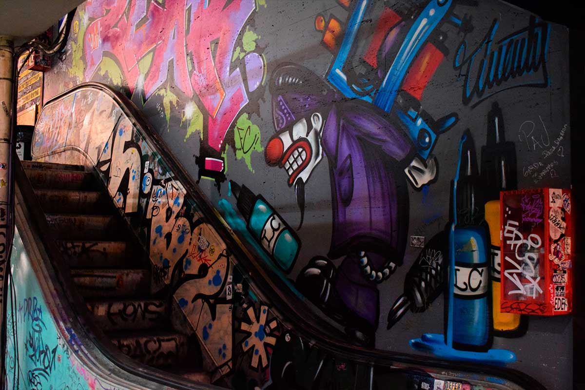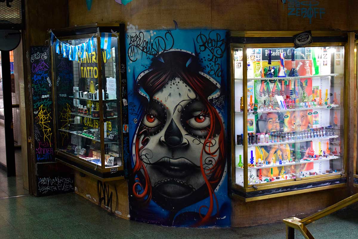 Também há uma grande variedade de tatuadores no local. Os grafites se tornaram a marca registrada da galeria.