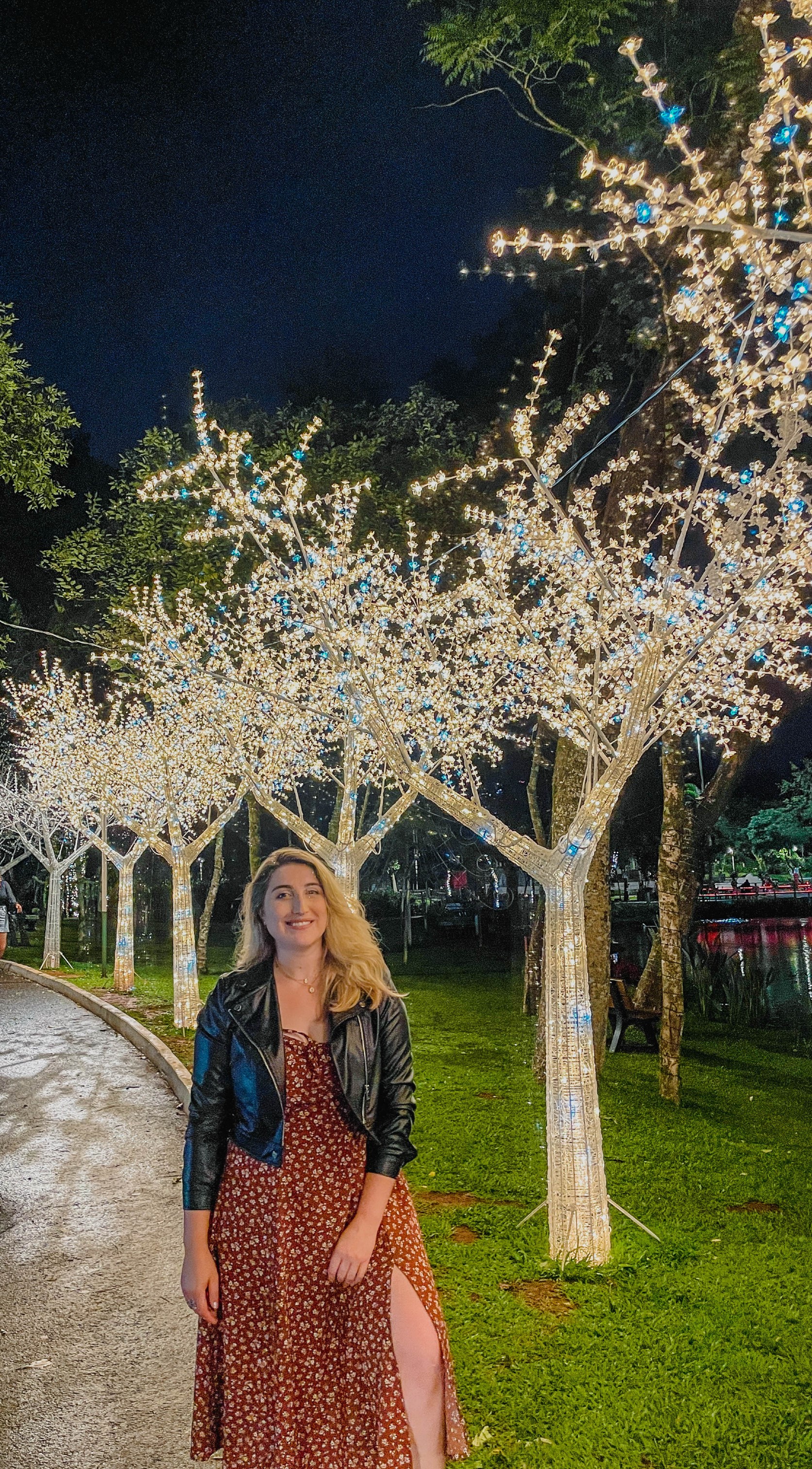 Apesar de as luzes estarem queimadas em diversos pontos da decoração, não posso deixar de destacar esse caminho de árvores.