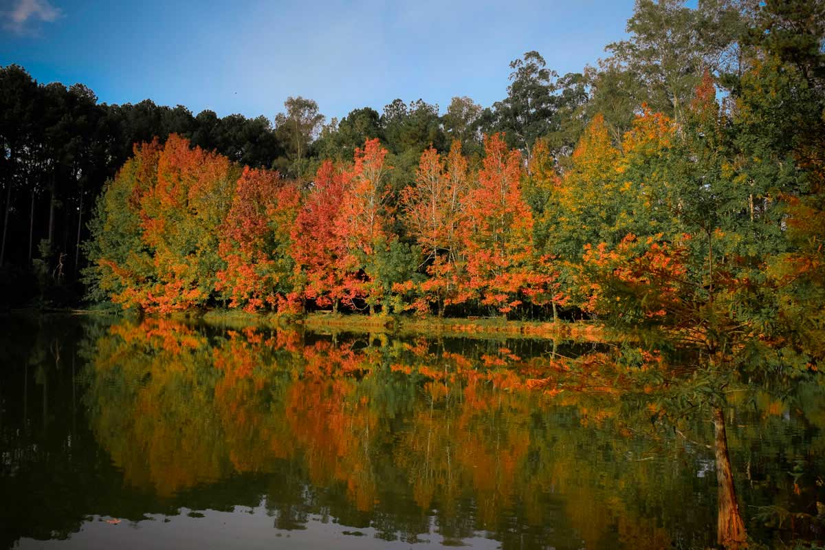 Dando sequência à caminhada em meio a trilha, me encontro em meio à uma imensidão verde que contrasta com o canto de pássaros. Impossível não se encantar por um lugar tão puro e agradável. Continuei minha caminhada para chegar logo ao meu objetivo, um vale encantado com um lago contrastado com os tons laranja das folhas que renovam-se para que logo possamos nos deslumbrar com uma nova estação.