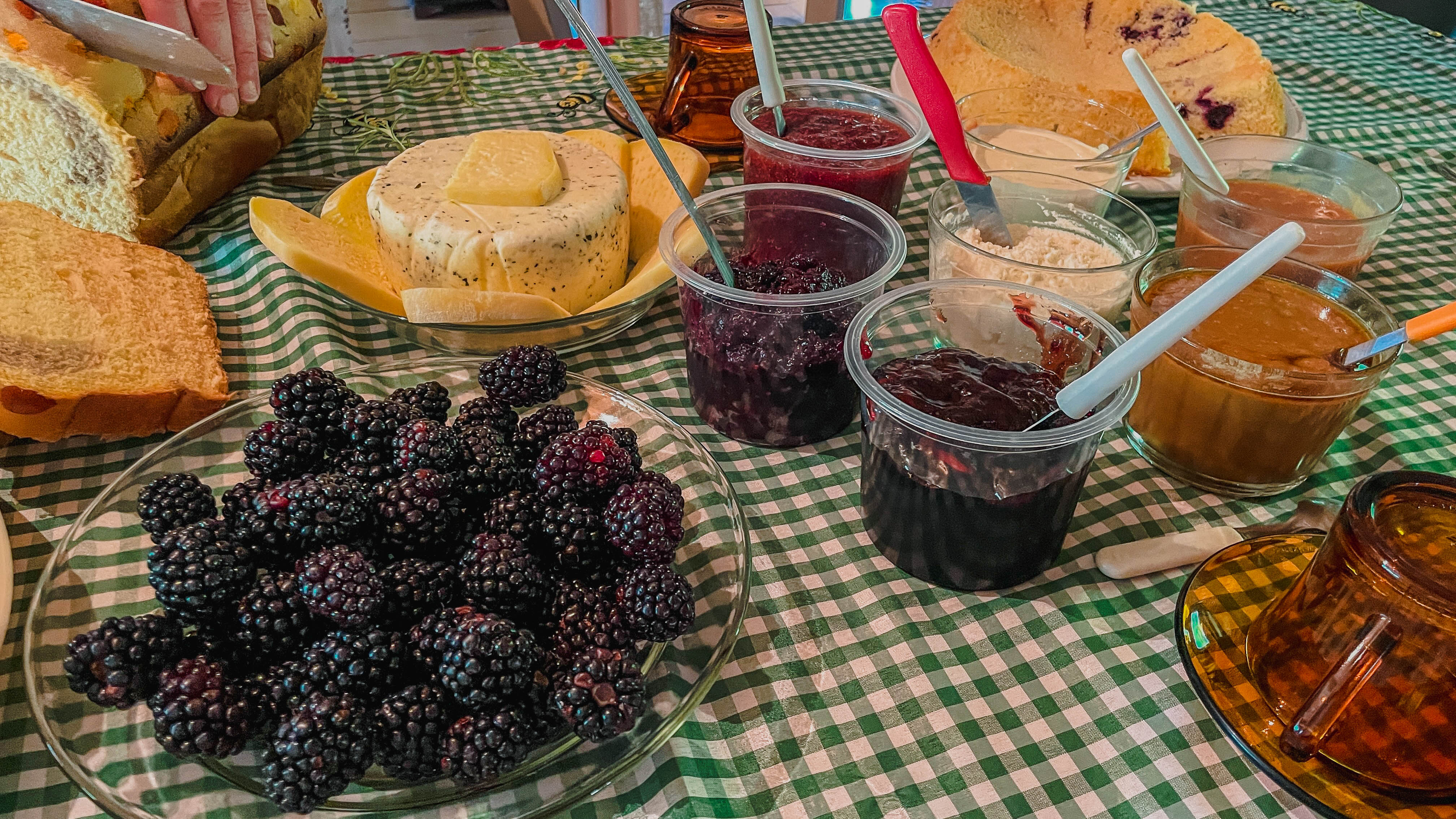 Também é oferecida uma variedade de geleias: de amora, framboesa, pêssego, figo, fisális, jabuticaba e pitanga. Há ainda a tradicional chimia de tacho, melado, doce de leite, ricota e manteiga. Também têm puína, queijo normal e temperado.