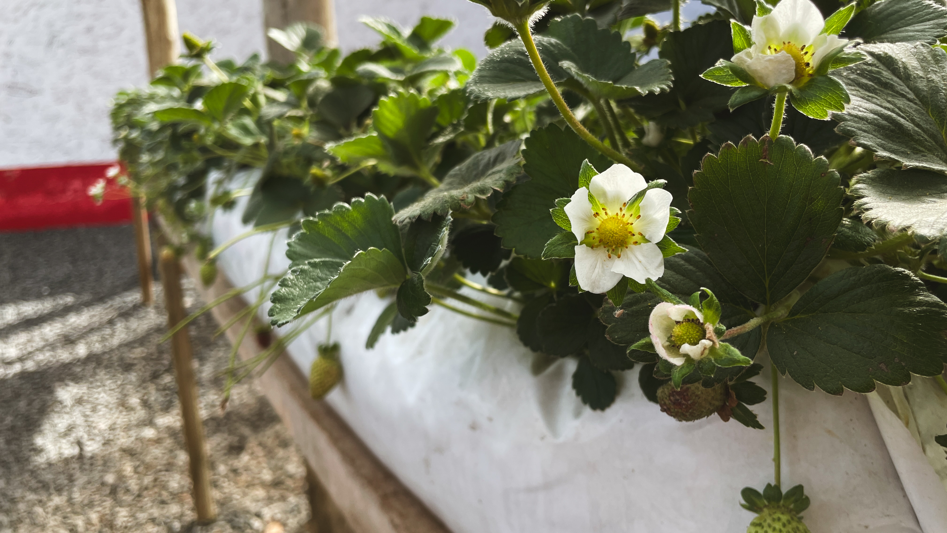 Ali tem uma estufa, onde os visitantes podem acompanhar e conhecer um pouco mais sobre o cultivo de morango. Foto: Jessica Edel/Notas de Viagem