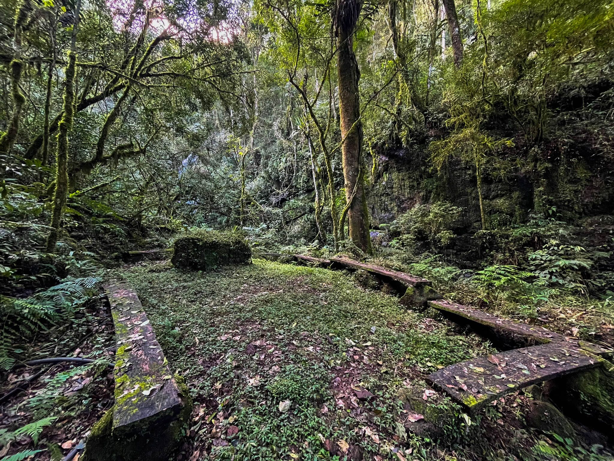 O caminho é tranquilo, cercado por mata nativa. Com um cenário que traz paz e tranquilidade. Em meio a uma clareira, há bancos para os visitantes sentarem e contemplarem a natureza, com o barulho da água e o canto dos pássaros.