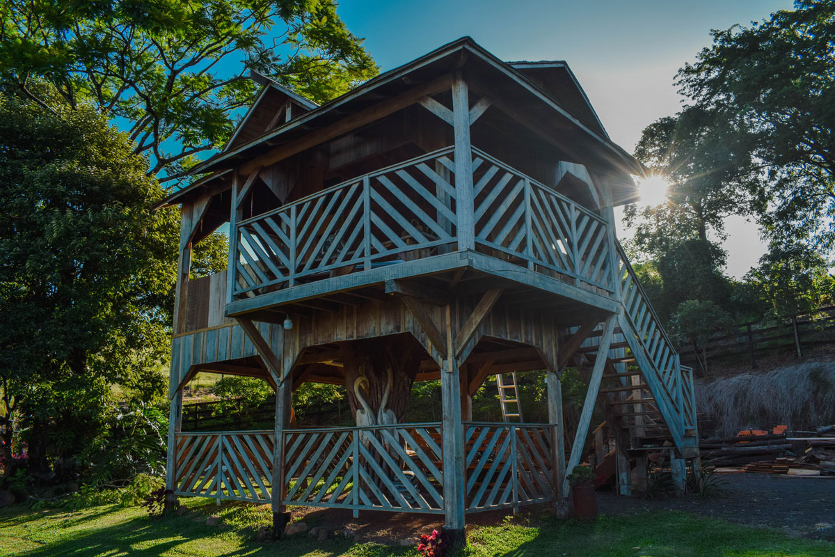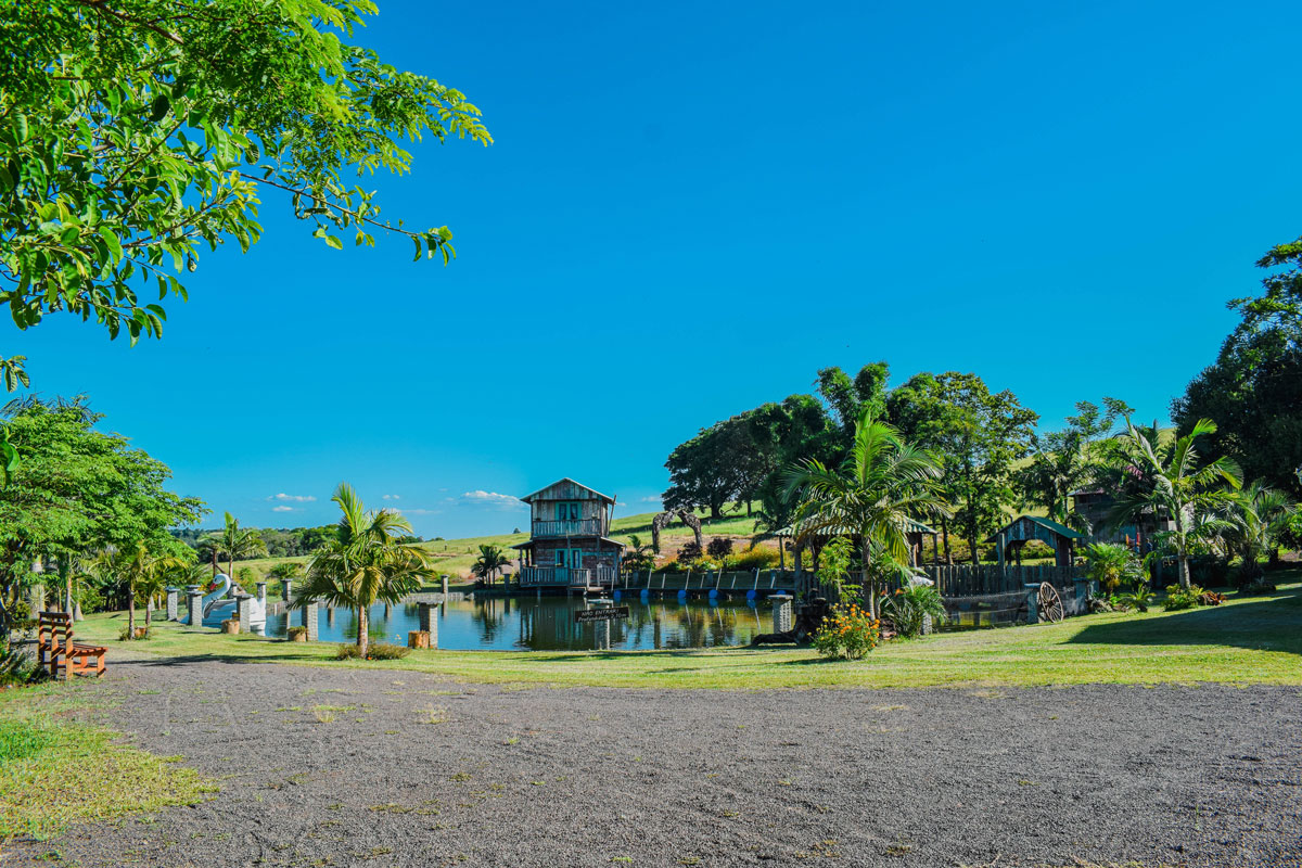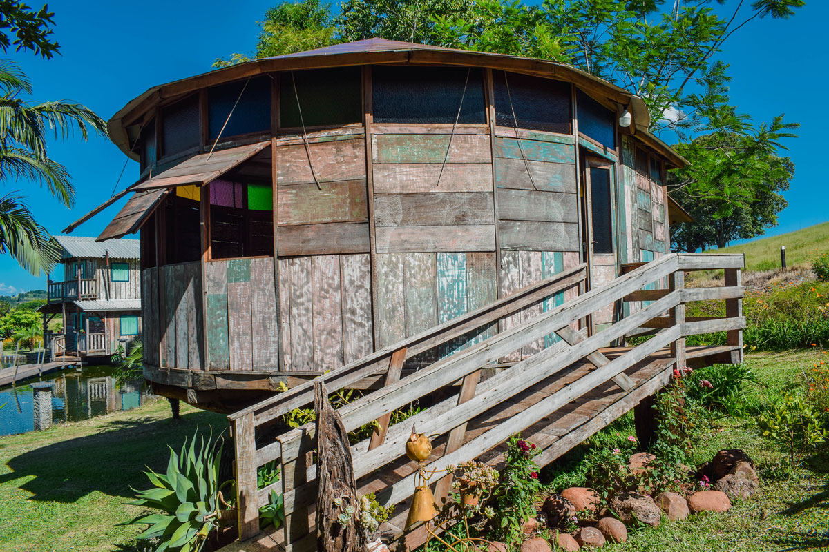 O salão de festas, uma estrutura rústica, em formato circular, em breve será transformada em uma cabana para hospedagem. Há obras em outra cabana, que está em andamento, com previsão de término para fevereiro/23. O local, com arte feita em madeira, têm por objetivo ser um meio de hospedagem que mescla uma construção moderna e a rusticidade.